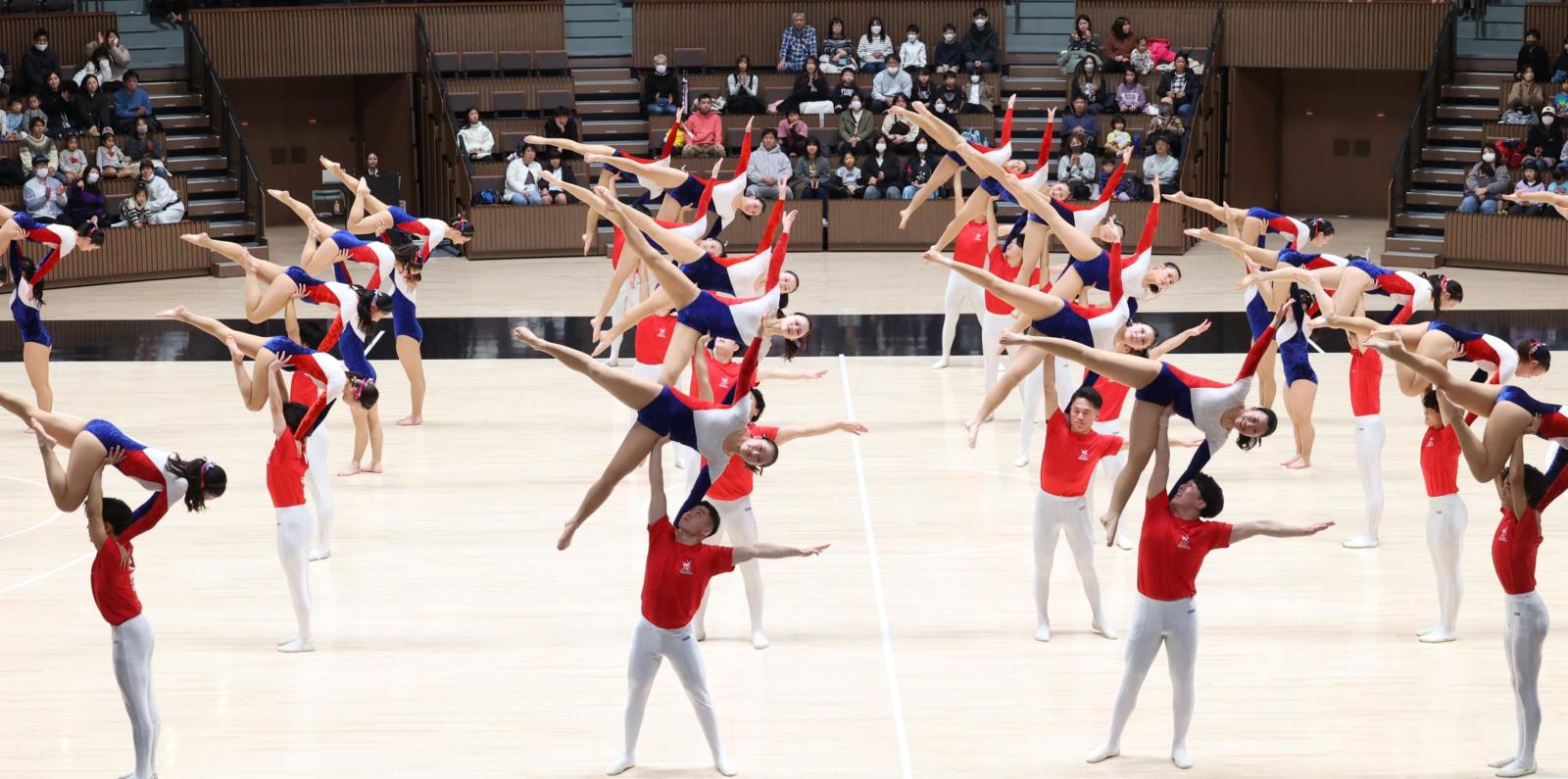 新着記事 大和市立西鶴間小学校実演🏫 第57回演技発表会 画像 体操部について 体操部は昭和16年(1941年)に体操を通じ各人が健康な身体の育成と共同精神の涵養に努め、将来指導者となるべき資質の向上と体操の普及発展に努力することを目的として創部され、現在に至っています。 体操の内容は、徒手体操、手具体操、組体操、組立体操、器具体操などの領域から基本的・基礎的な体操から応用・発展的な体操の演技を研鑚しています。 * 体操競技部ではありません クラブ紹介 演技映像Ⅰ 演技映像Ⅱ 海外活動の映像