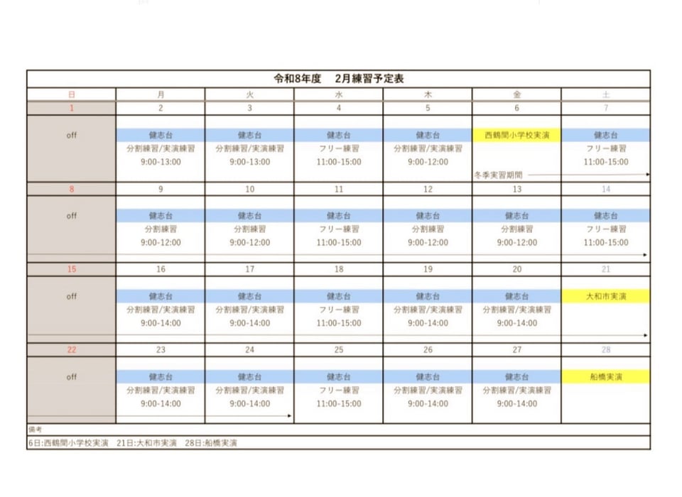 春季合宿2日目は、午前と午後の計6コマ、演技練習や先生のコマを行いました❗️